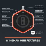 • Carabiner Clip - Easily attach the Wingman Mini to your golf bag.